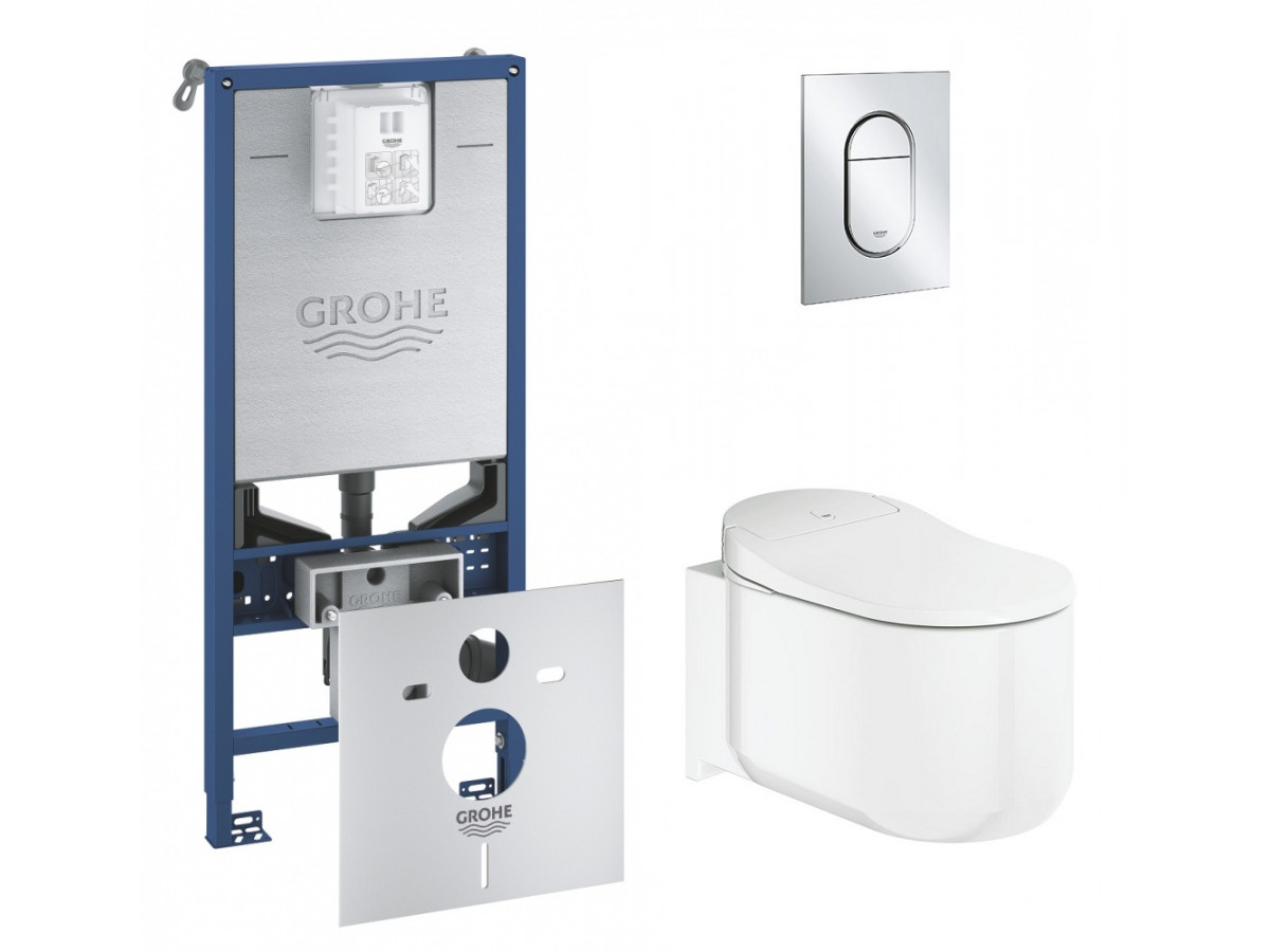 Инсталляция Grohe с безободковым унитазом Sensia Arena, 120172, с функцией биде, клавиша цвет хром глянцевый, комплект