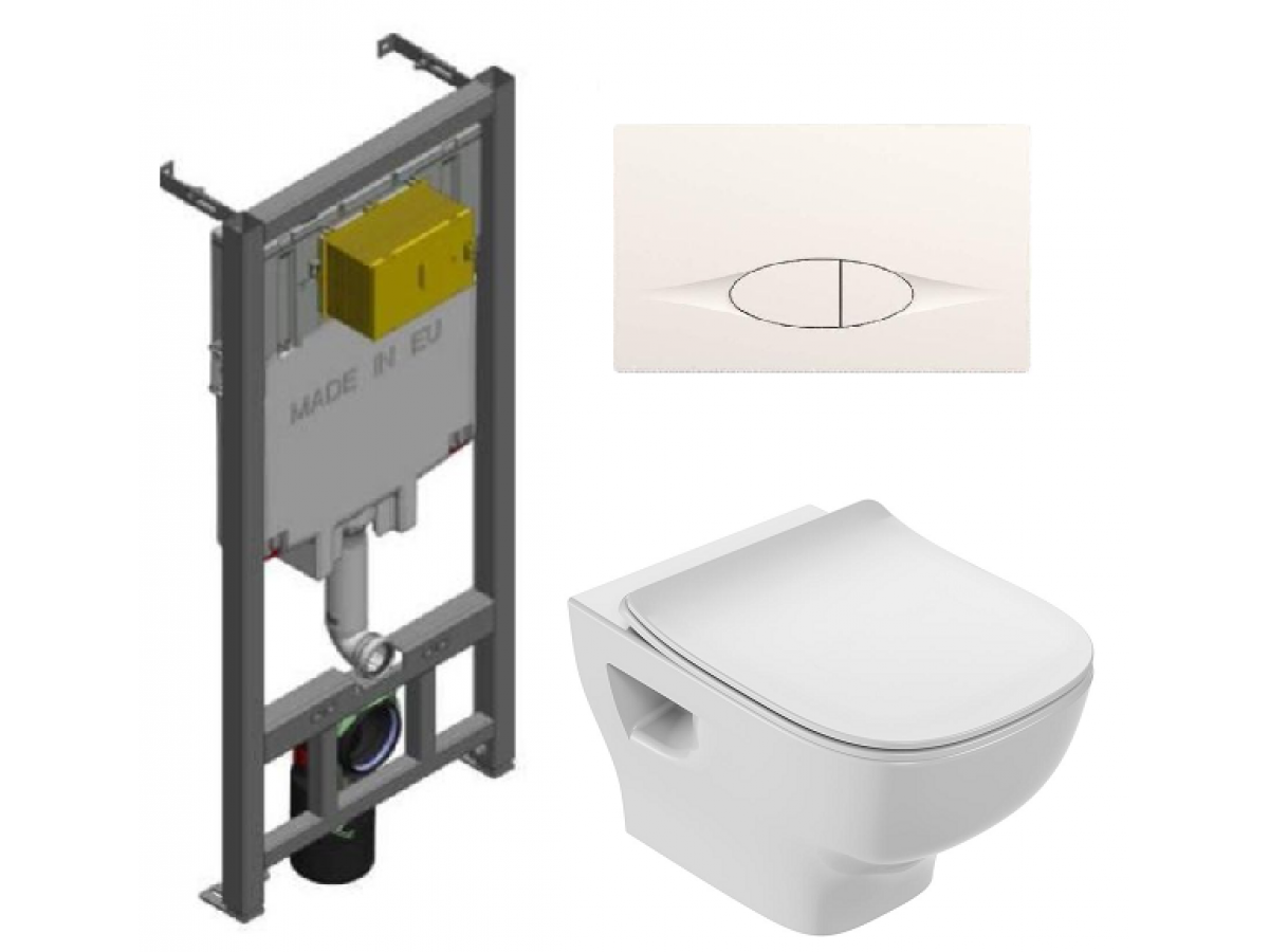 Инсталляция Jacob Delafon с безободковым унитазом Jacob Delafon Struktura EDF102-00, сиденье микролифт клавиша белая, комплект 364466