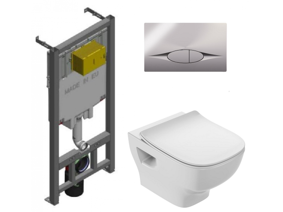 Инсталляция Jacob Delafon с безободковым унитазом Jacob Delafon Struktura EDF102-00, сиденье микролифт клавиша хром, комплект 364465