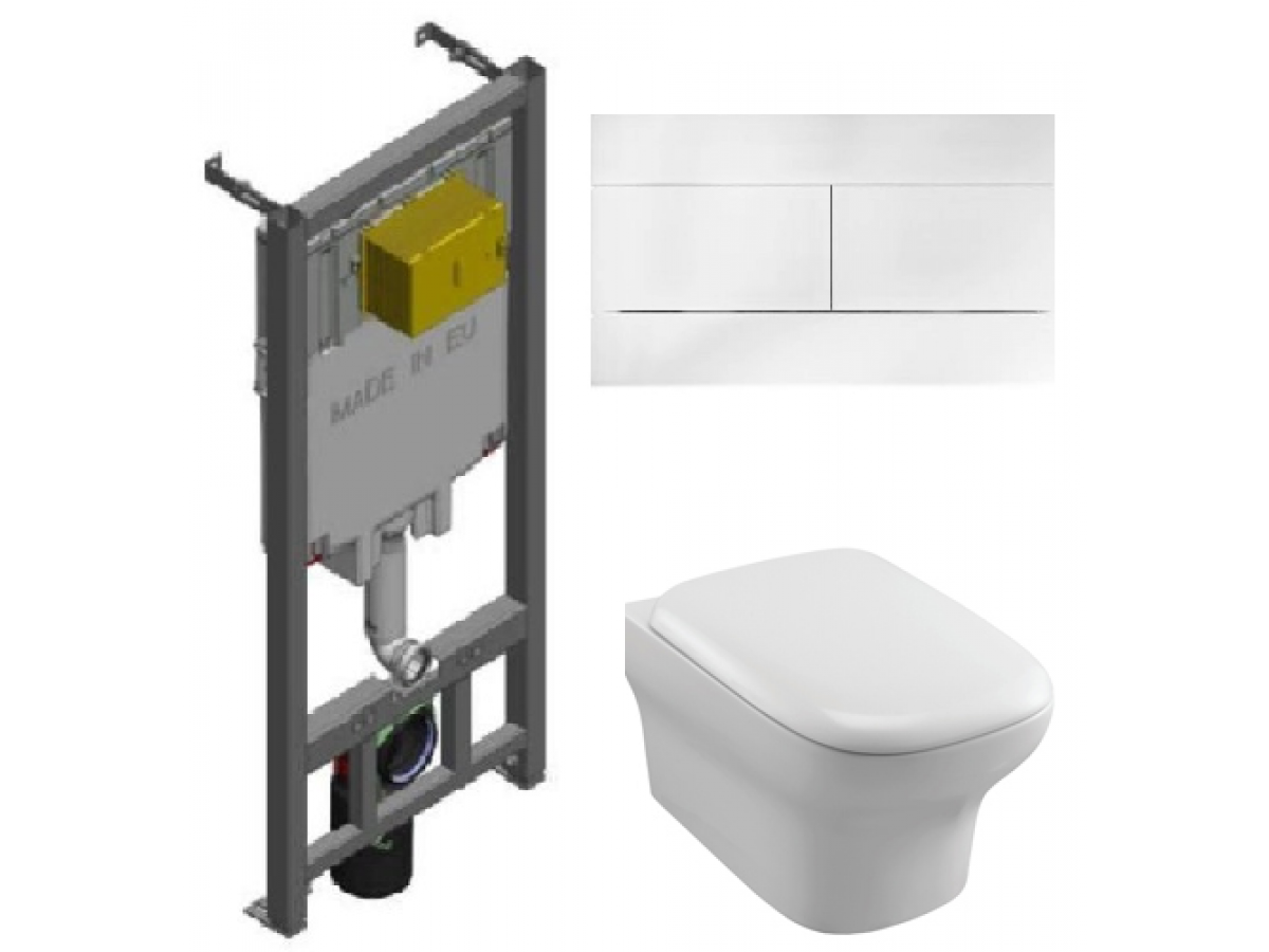 Инсталляция Jacob Delafon с безободковым унитазом Jacob Delafon Vox EDM102, сиденье микролифт клавиша белая, комплект 322960 (GM)