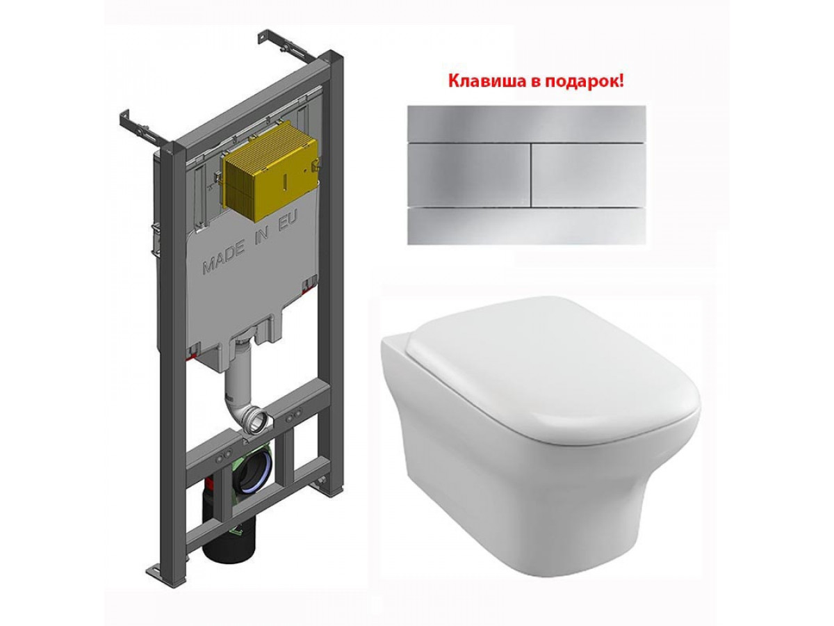 Инсталляция Jacob Delafon с безободковым унитазом Jacob Delafon Vox, крышка микролифт, клавиша хром в подарок, EDM102-00/E20142-00/E29025-NF/E4316-CP