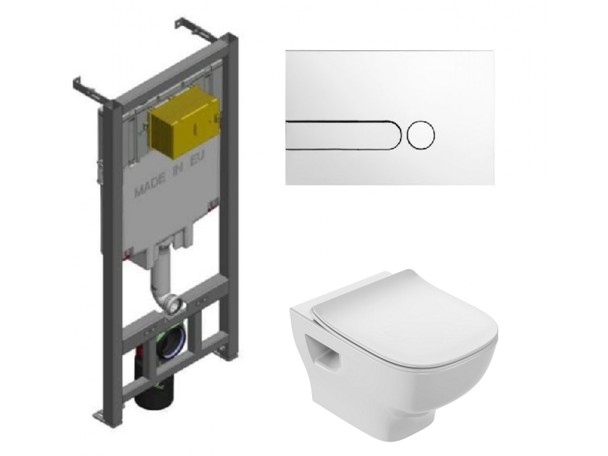 Инсталляция Jacob Delafon с безободковым унитазом Struktura EDF102-00, сиденье микролифт клавиша белая, комплект 364490