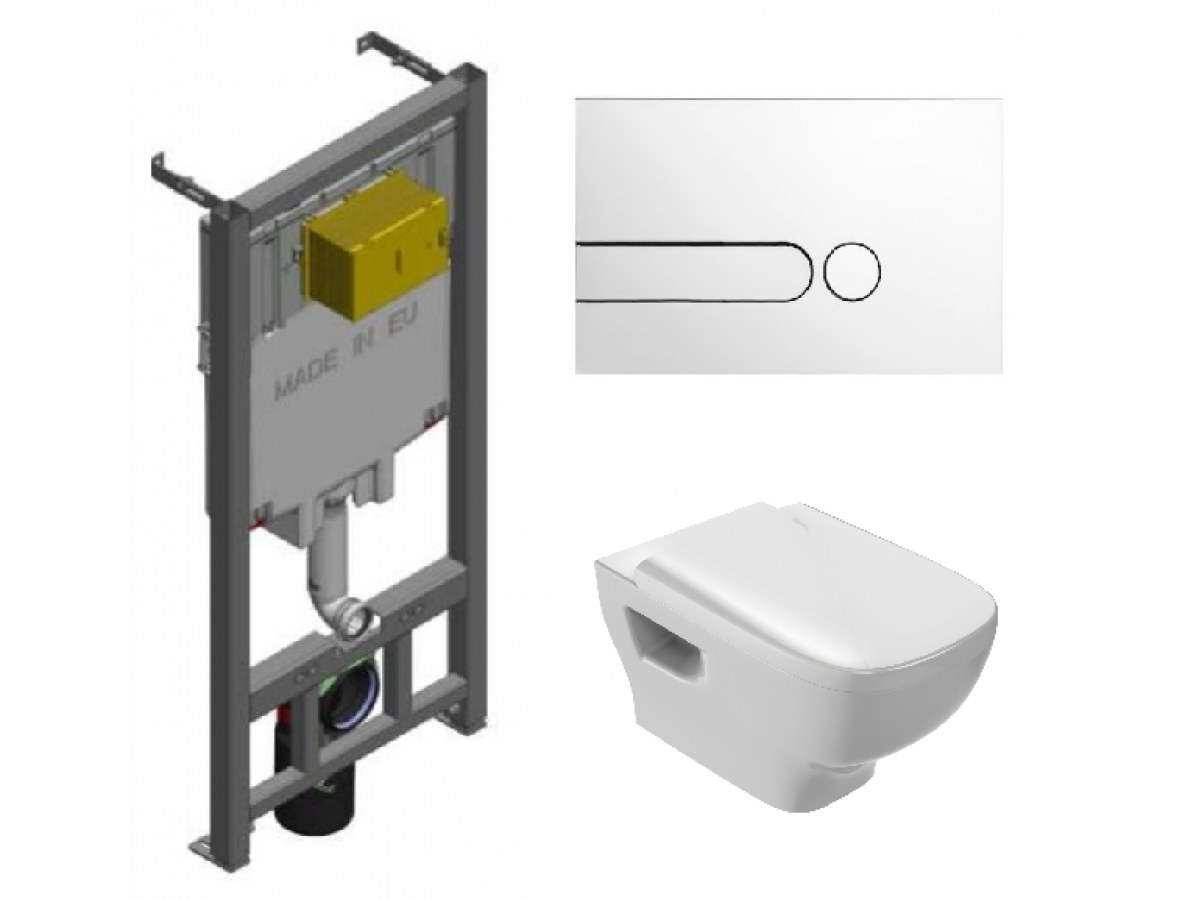 Инсталляция Jacob Delafon с унитазом Jacob Delafon Struktura EDE102-00, сиденье микролифт клавиша белая, комплект 322875 (GM)