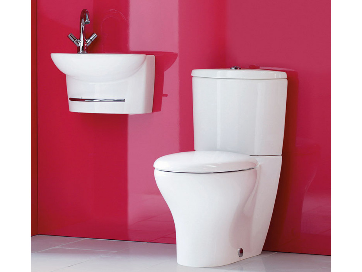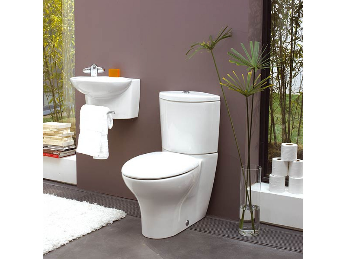Унитаз комплектуется скрытым креплением к полу, оснащен кнопочной двухрежимной арматурой. Бачок E1425 с бесшумным механизмом экономии воды на 3/6 литров, установленный на заводе; нижняя подводка.