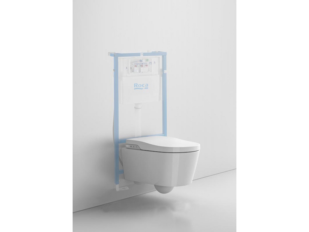 Подвесная система Roca Inspira In-Wash – это унитаз со встроенным гигиеническим душем и сушкой. Чаша унитаза сделана из белоснежного фарфора и требует инсталляции (приобретается отдельно). Чаша не имеет ободка, что весьма практично при санитарной обработке фаянса, а система «антивсплеск» не дает воде разбрызгаться при смыве.