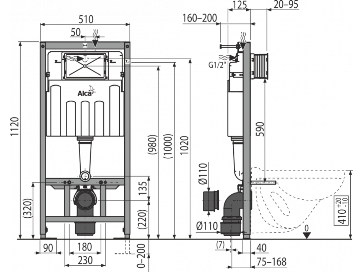 1. Инсталляция Alcaplast AM101/1120 для сухой установки