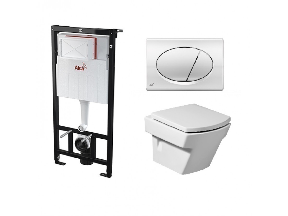 Инсталляция Alcaplast с унитазом Roca Hall 346627000, сиденье микролифт клавиша хром, комплект