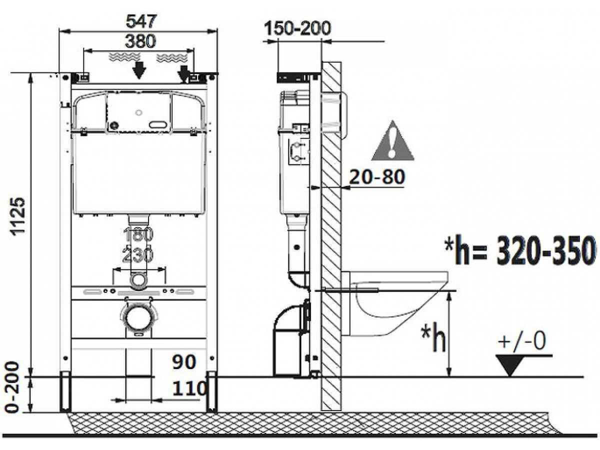 - Слив: 2-х режимный, по умолчанию объем смыва настроен на 6/3 л