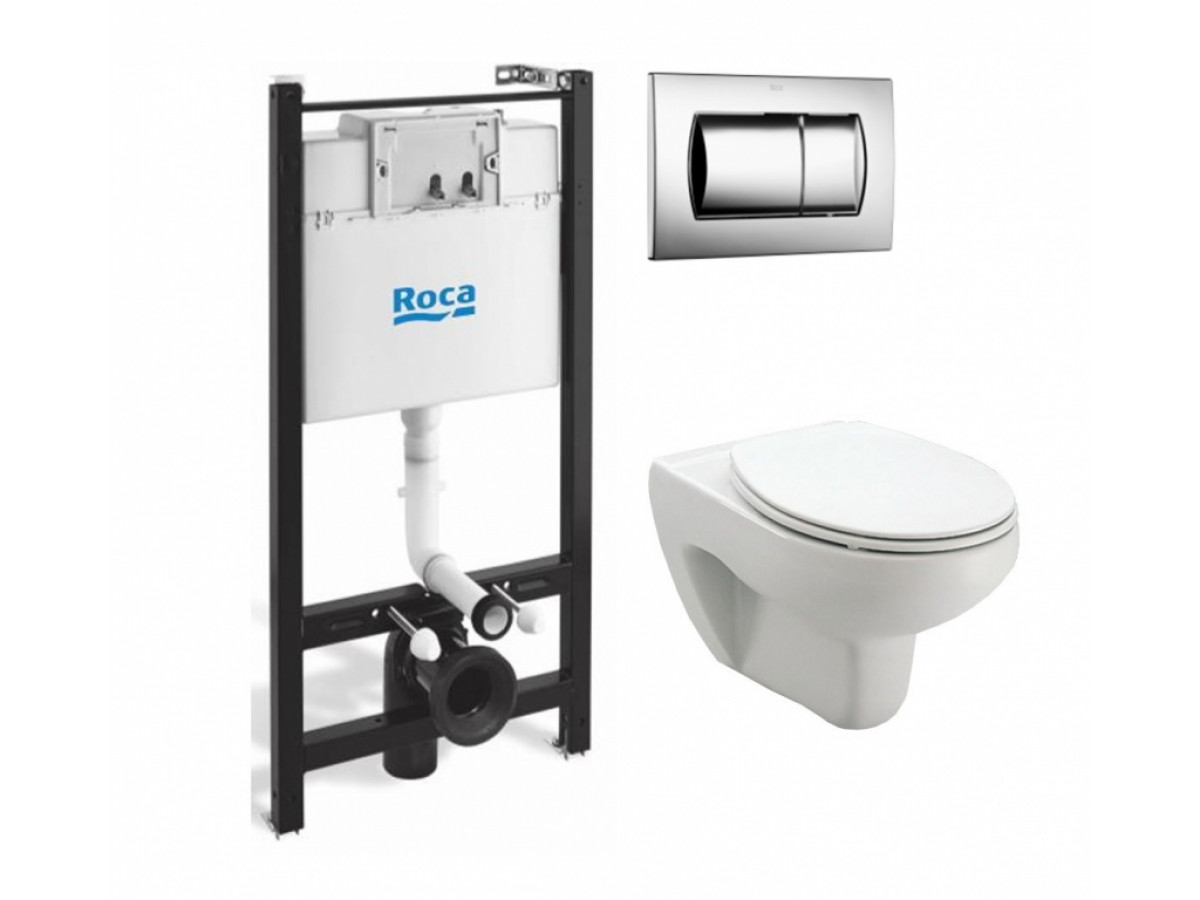 Комплект 4 в 1: Инсталляция Roca Active + Клавиша Roca 890095001, двойная PL1, хром+ Унитаз Roca Mateo 346200000+Сиденье Roca Mateo ZRU9302815 стандарт