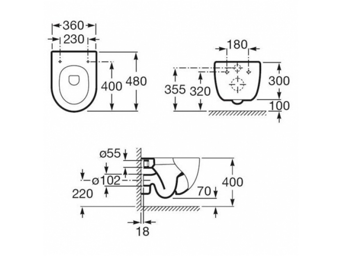 - Унитаз: ободковый
