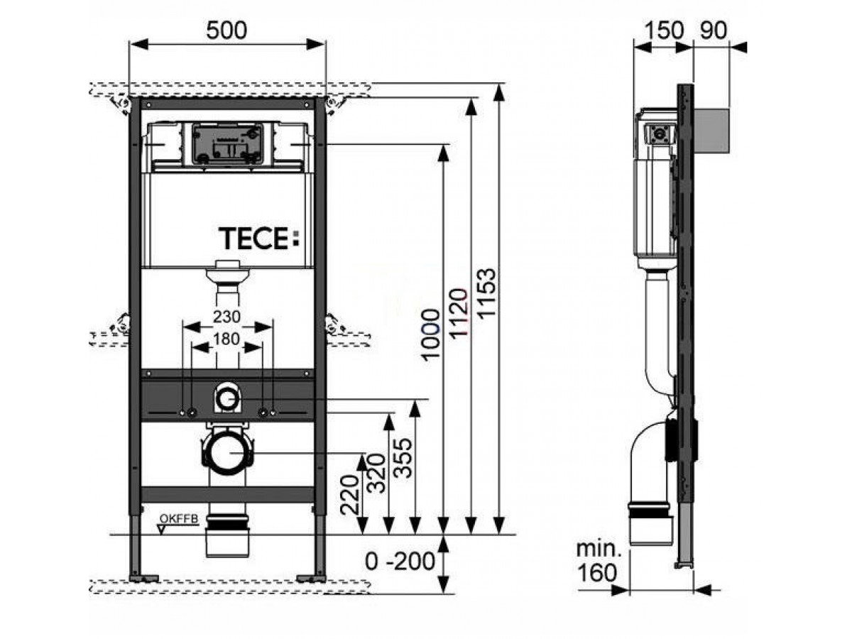 - Инсталляция Tece K400626 для подвесного унитаза с кнопкой TeceBase