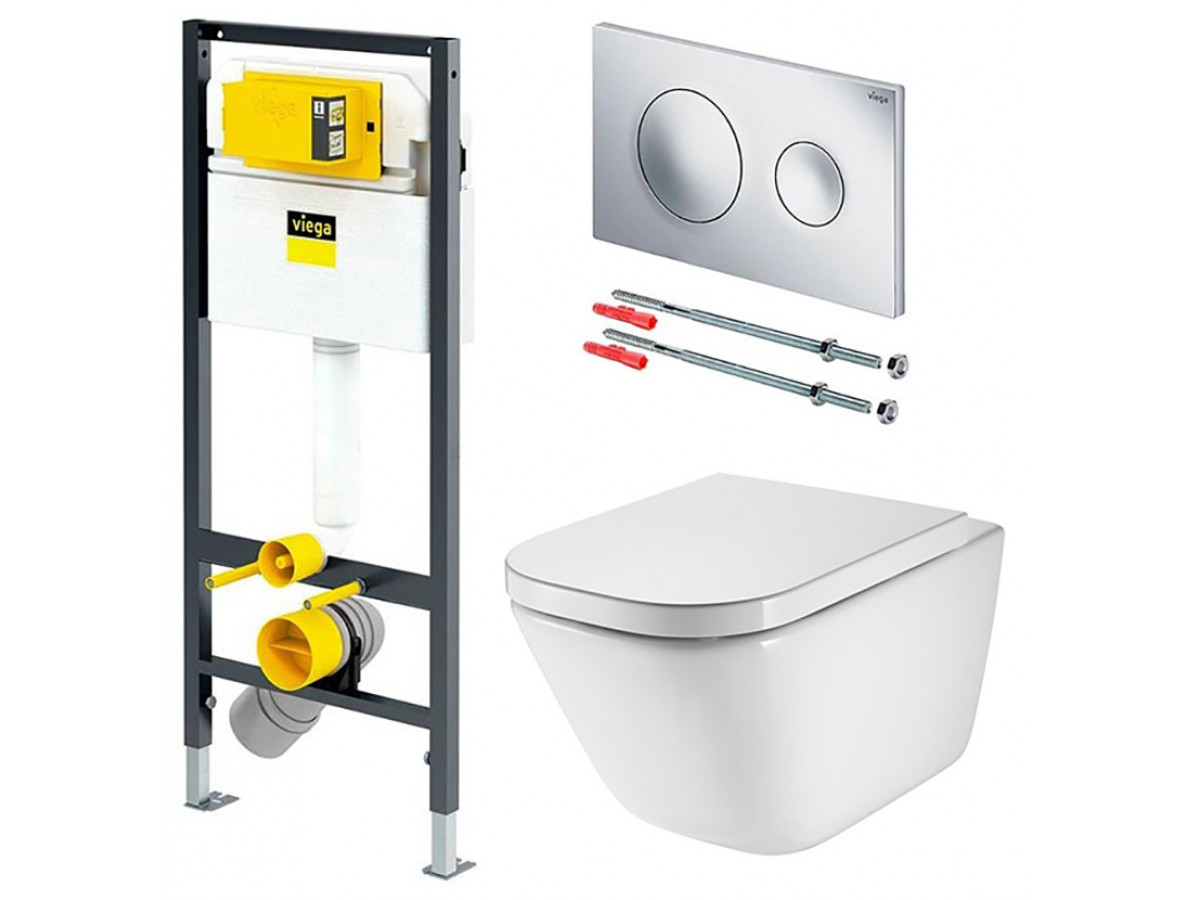 Инсталляция Viega с безободковым унитазом Roca Gap Clean Rim 734647L000, сиденье микролифт, комплект
