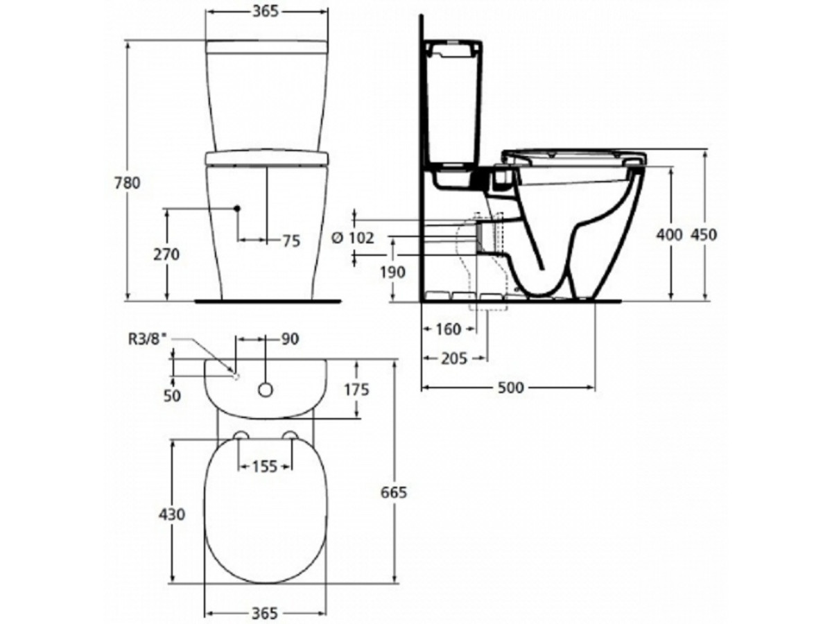 Унитаз-компакт Ideal Standard Connect AquaBlade® E039701 с бачком Cube E797001