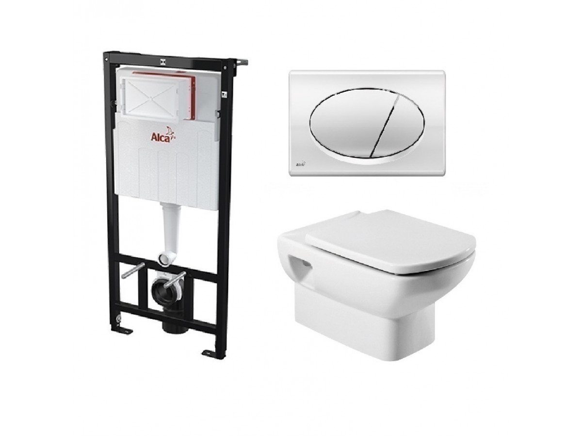 Инсталляция Alcaplast с унитазом Roca Dama Senso 346517000, сиденье микролифт клавиша хром, комплект