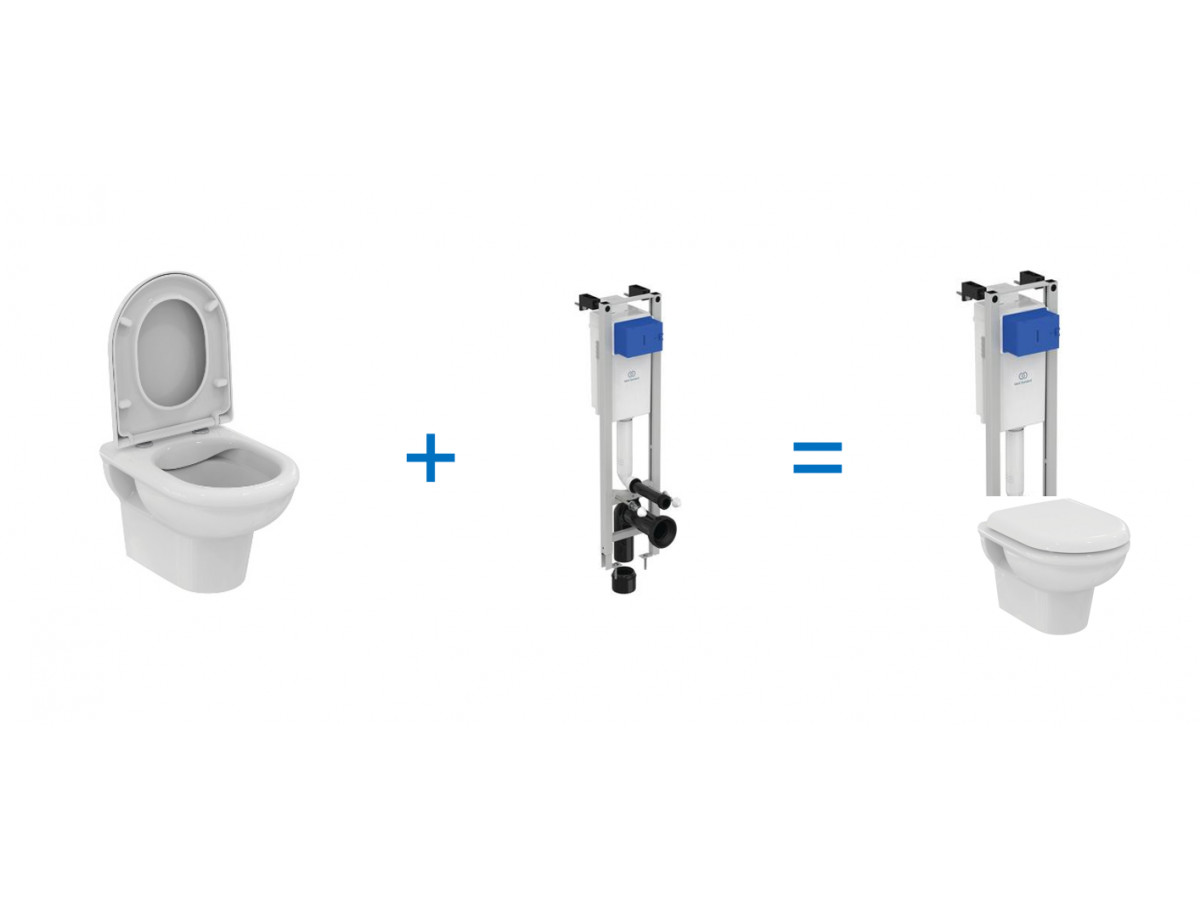 Инсталляция Ideal Standard Prosys Eco Frame M E233267 с унитазом Ideal Standard Exacto Rimless безободковый c сиденьем микролифт UV09001, комплект, X022601