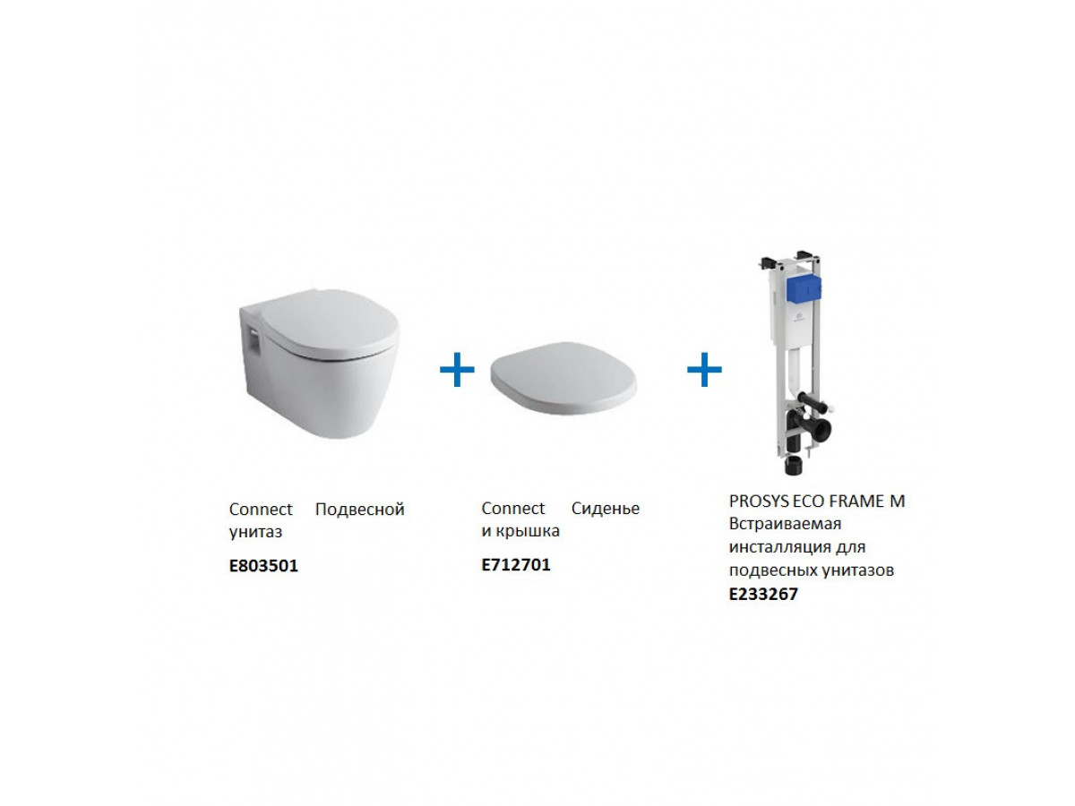 Инсталляция Ideal Standard ProSys Eco Frame M W220101 с унитазом Connect E803501, сиденье микролифт E712701, комплект