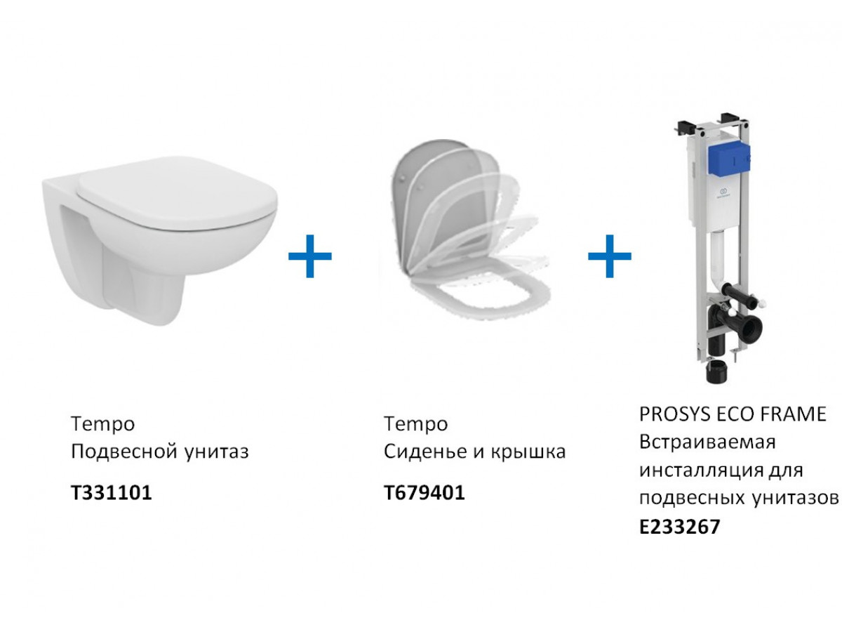 Инсталляция Ideal Standard ProSys Eco Frame M W440101 с унитазом Tempo T331101, сиденье микролифт Tempo T679401, комплект