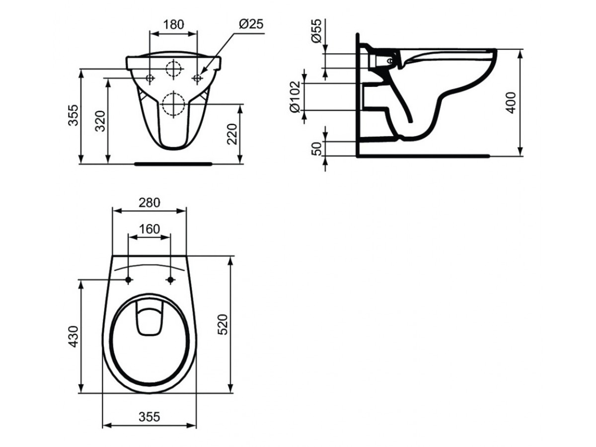 • Подвесной унитаз Ideal Standard Eurovit Rimless K881201