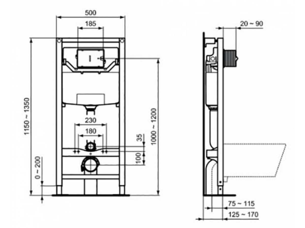 • Инсталляция для подвесного унитаза с кнопкой