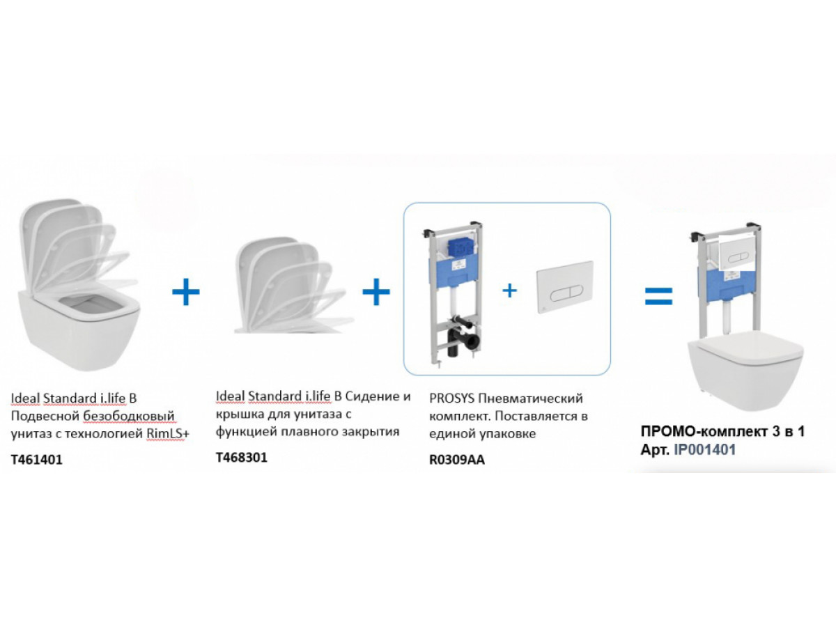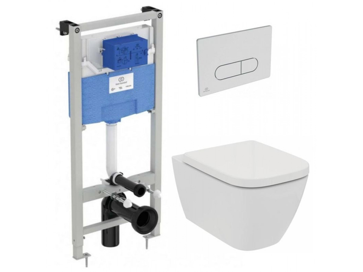 Инсталляция Ideal Standard Prosys с кнопкой, с унитазом Ideal Standard i.life B RimLS+, сиденье микролифт, комплект, IP001401
