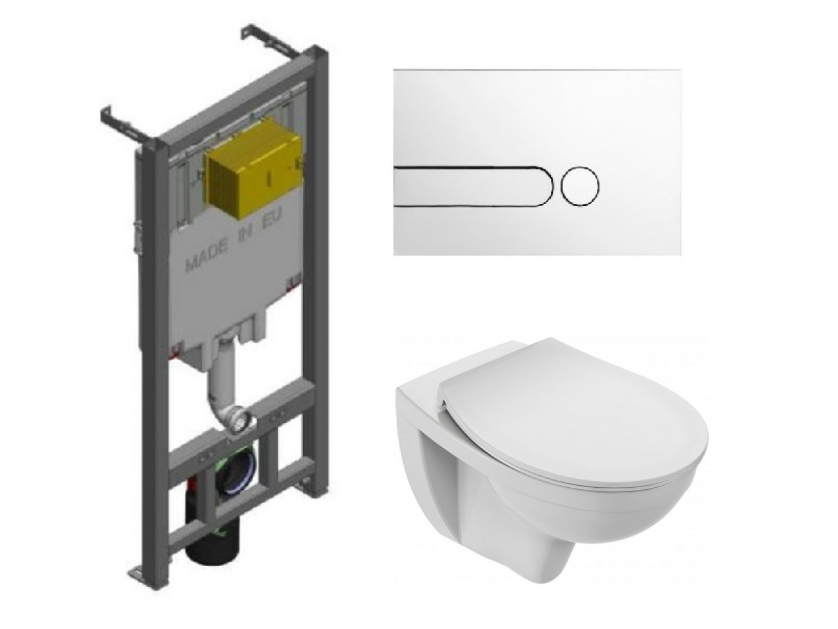 Инсталляция Jacob Delafon с безободковым унитазом Jacob Delafon Patio EDV102-00, сиденье микролифт клавиша белая, комплект 322909