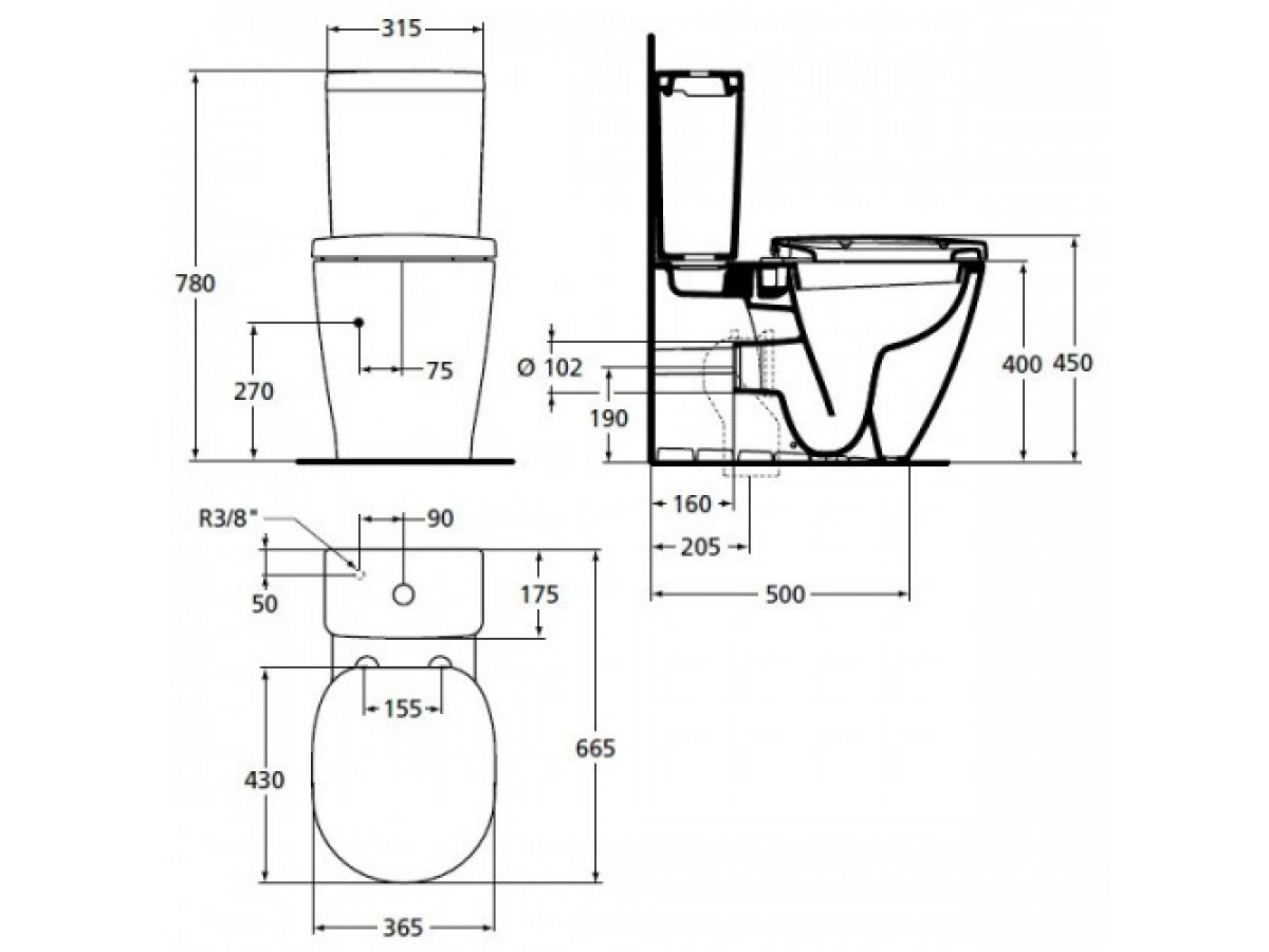 Унитаз компакт Ideal Standard Connect E803601 напольный, с бачком E797001