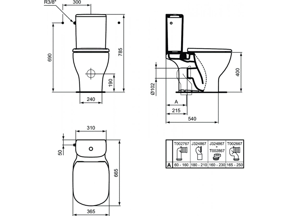 TESI AquaBlade® Напольный пристенный унитаз с бачком T356801: