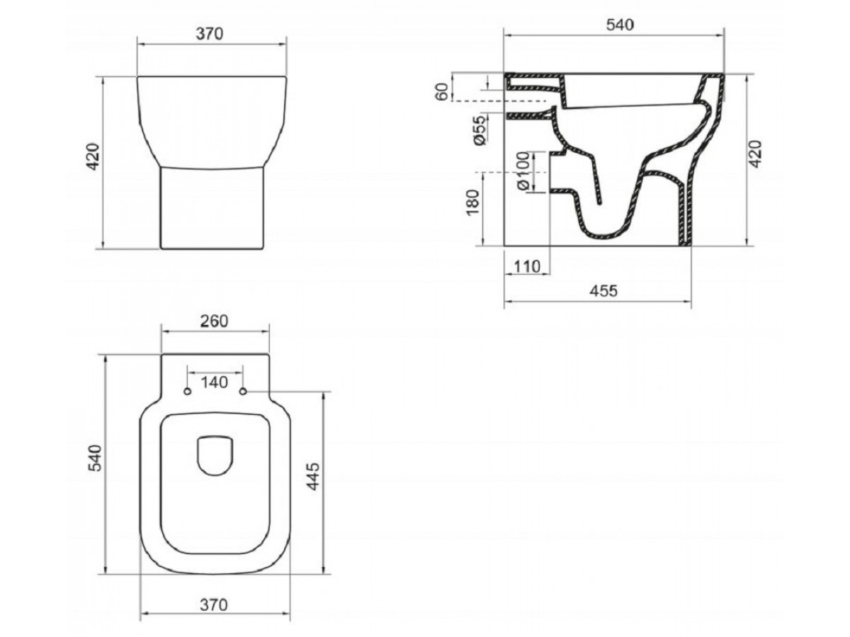 Приставной унитаз BelBagno Vaso P-trap BB127CB