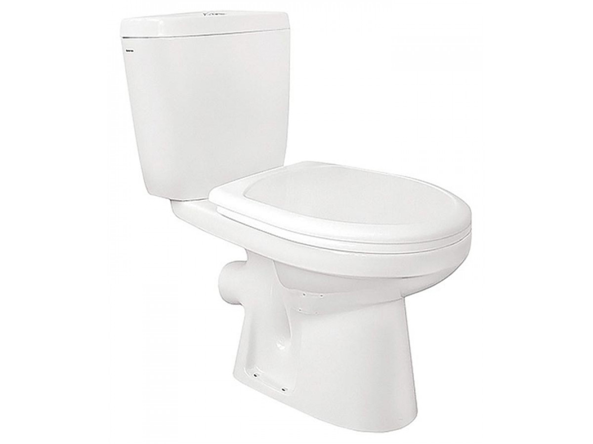 Унитаз изготовлен из белоснежного санфаянса в белом цвете, который не требует специального ухода. Чаша оборудована косым выпуском, поэтому соединение с канализацией производится на стыке пола и стены. Дополнительно в наборе предусмотрено прочное дюропластовое сиденье с крышкой.